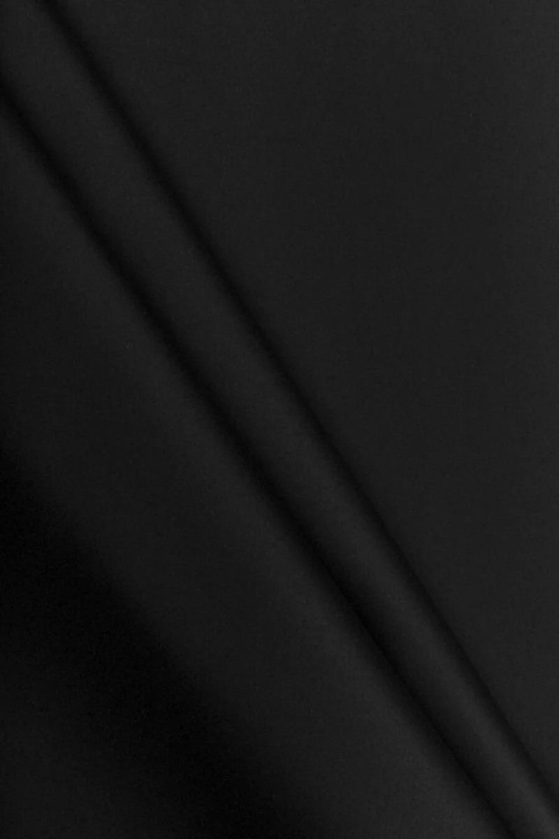 Włoska tkanina płaszczowa utkana z wełny oraz poliamidu w kolorze czarnym. Tkanina o gładkim i zwartym splocie, lewa strona wykończona jest czarną pianką, co sprawia, że tkanina sztywno się układa, oraz lekko pracuje na nitkach. Dzięki użytej piance, materiał zyskuje dodatkową trwałość i wytrzymałość oraz nie wymaga podszewki. Polecamy na płaszcze, kurtki a także cieplejsze marynarki.