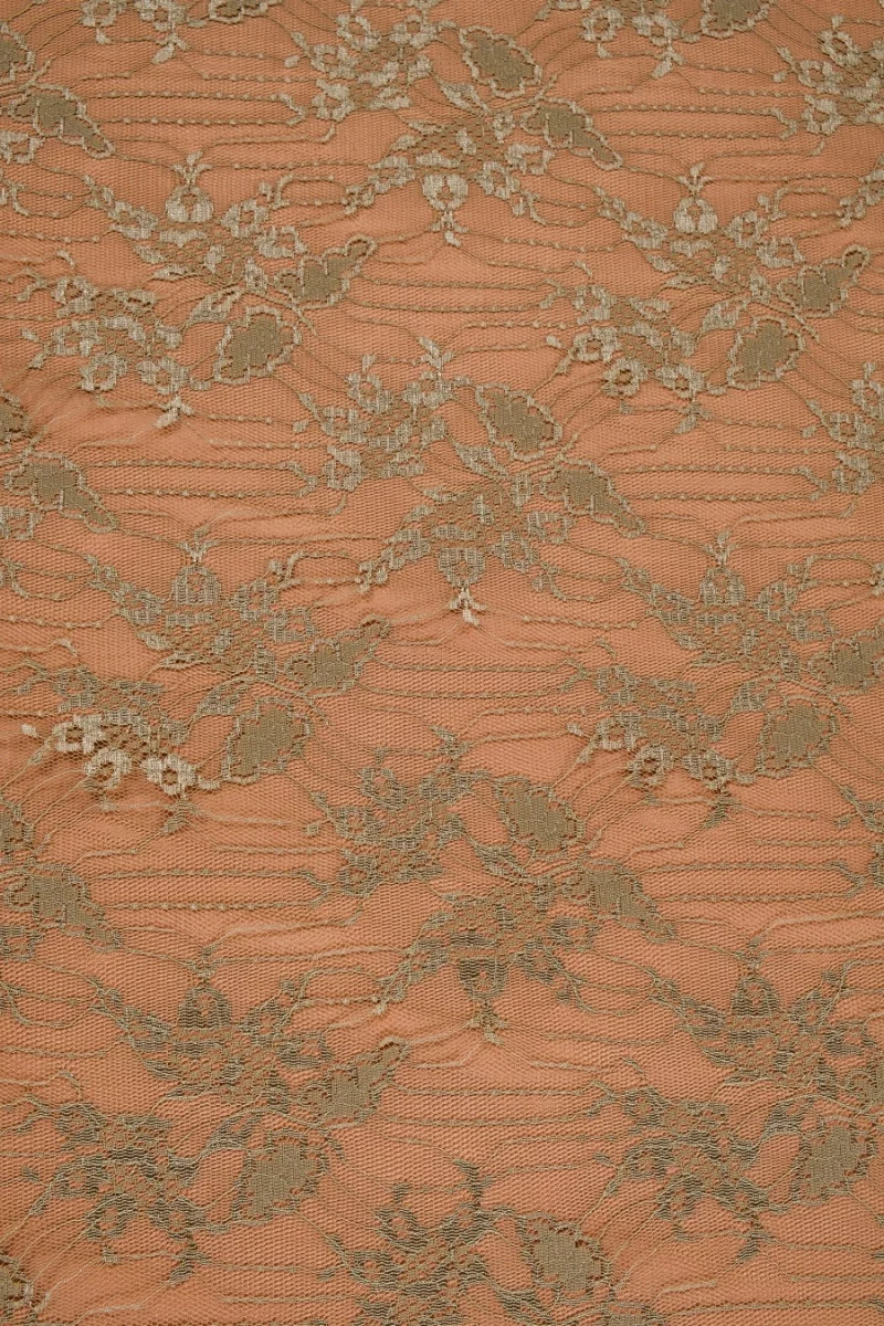 Delikatna koronka francuska, gęsto tkana , w kolorze jasnej oliwki. Lekko elastyczna, idealna na sukienki lub bluzeczki.