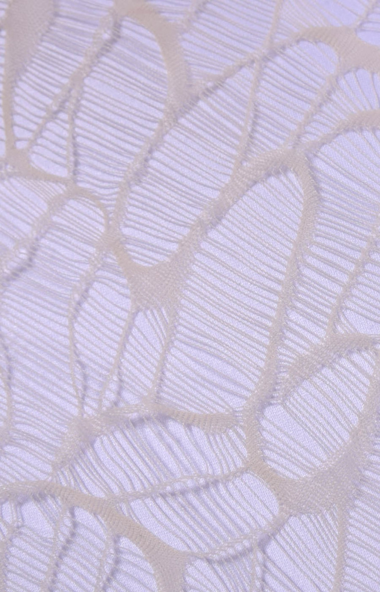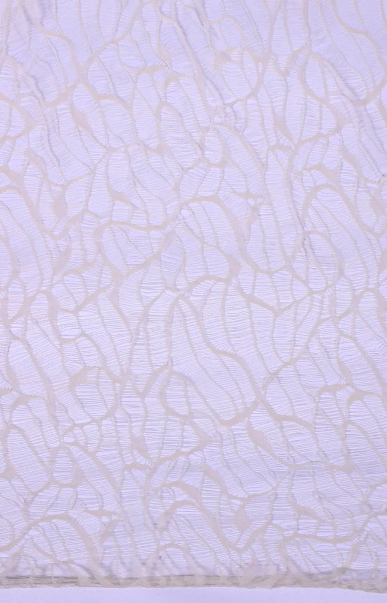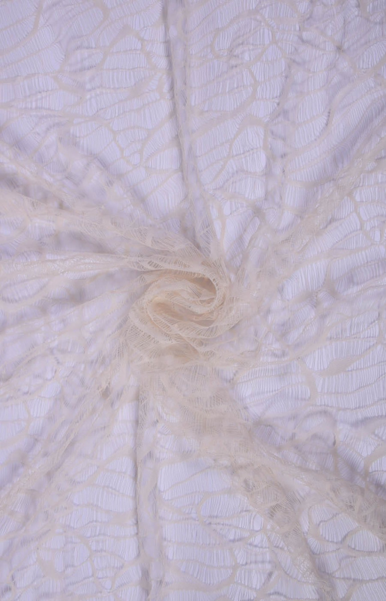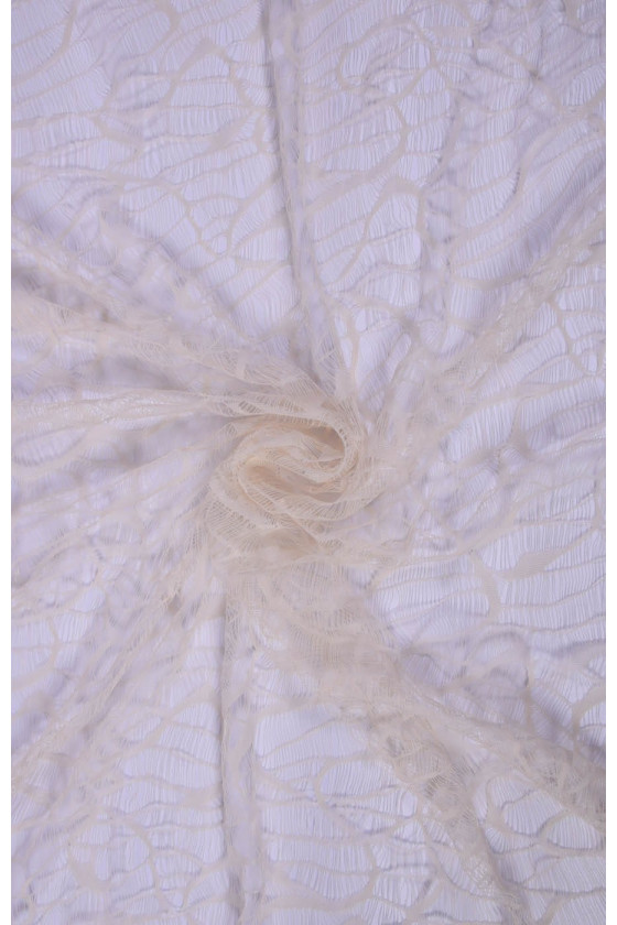 Koronka w kolorze waniliowym o bardzo ciekawym wzorze. Tkanina jest elastyczna. Idealna na sukienki, bluzeczki.
