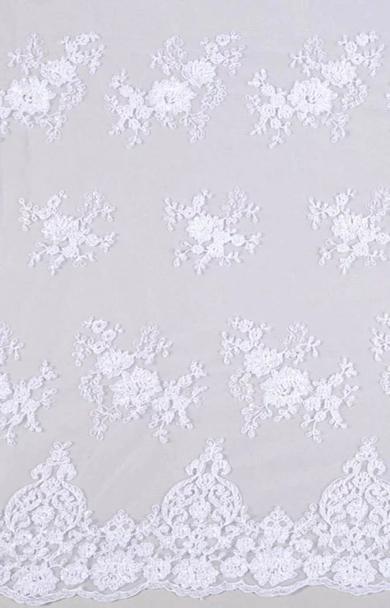 Koronka z przeznaczeniem na sukienki ślubne. Obustronnie wykończona zębem, Wyszywana koralikami.