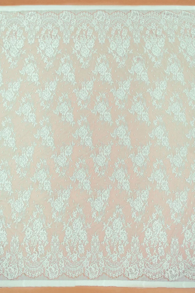 Piękna koronka w kolorze pastelowej mięty - obustronnie wykończona zębem (do samodzielnego wycięcia). Tkanina delikatna, idealna na wieczorowe sukienki lub bluzeczki.