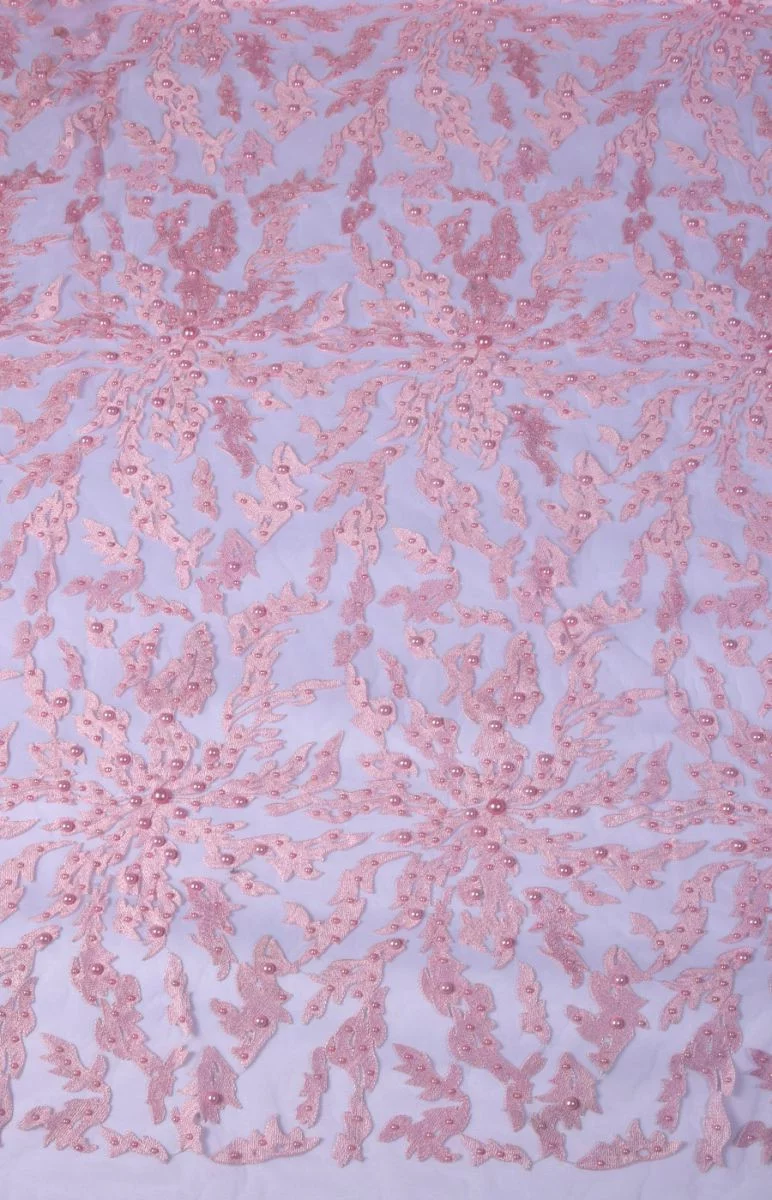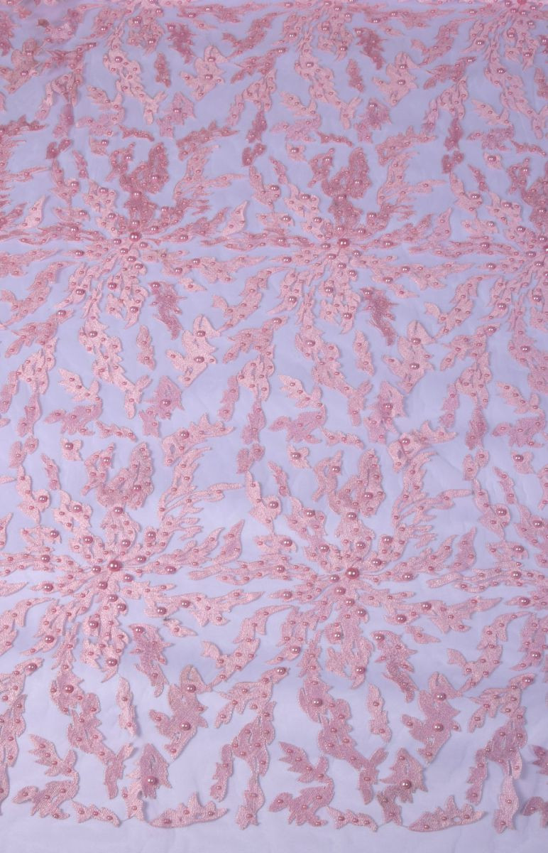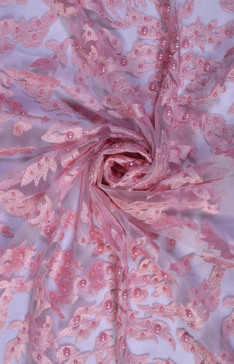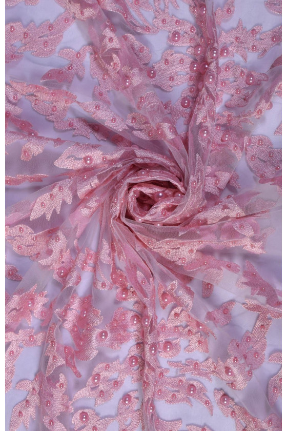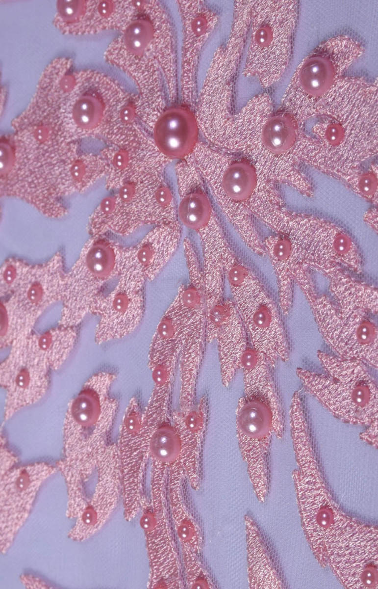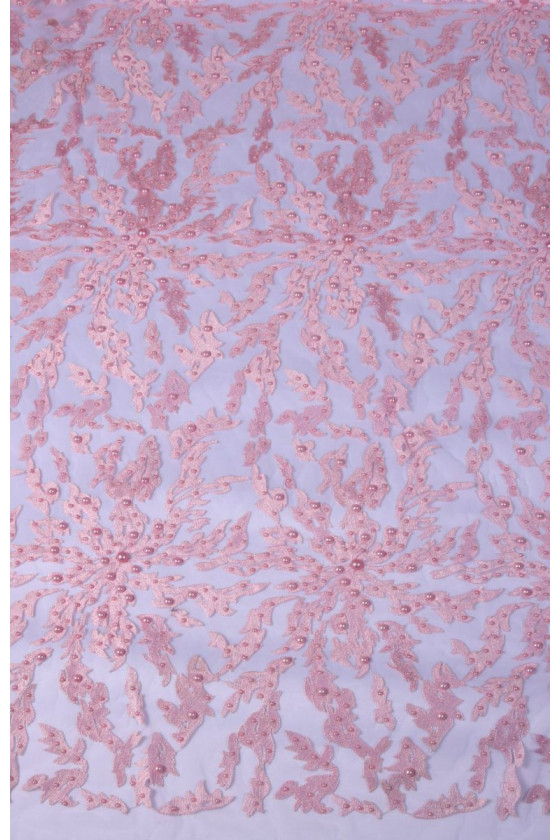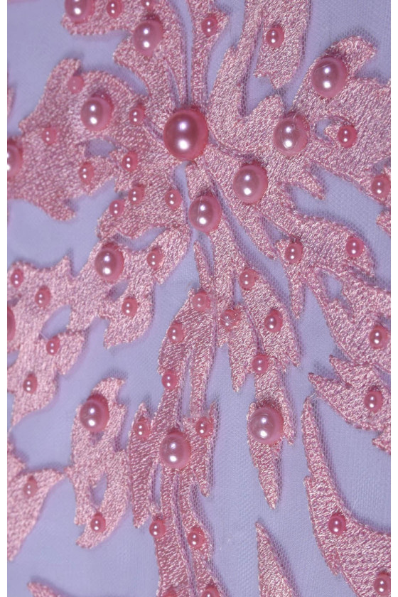 Koronka obustronnie wykończona zębem. Naklejane różnej wielkości perełki. Siatka lekko elastyczna.