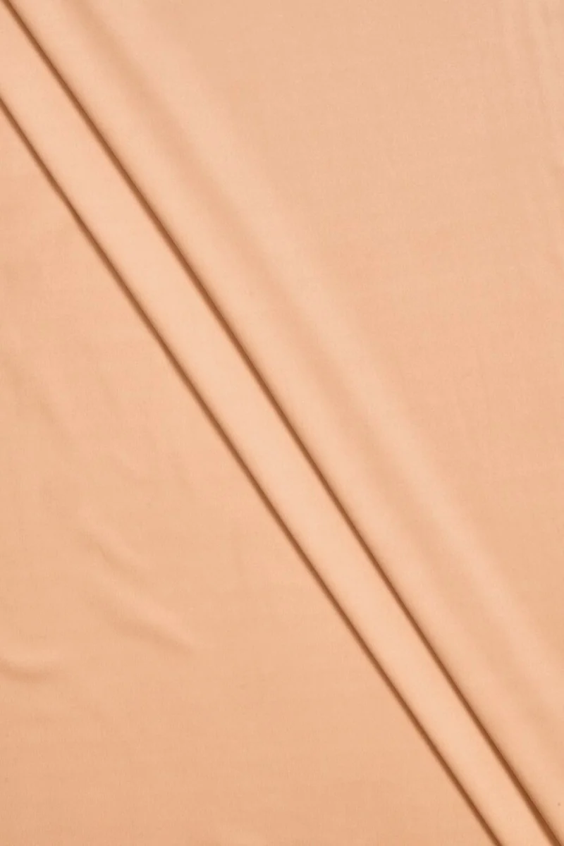 Włoska dzianina elastyczna typu lycra w kolorze beżu cielistego. Materiał o zwartym splocie oraz gładkiej, matowej powierzchni, bardzo elastyczny - idealny dla osób lubiących dopasowaną do ciała odzież oraz ponadczasową kolorystykę. Świetnie sprawdzi się do uszycia odzieży tanecznej lub wieczorowej a także jako podszewka do tkanin z koralikami i cekinami.