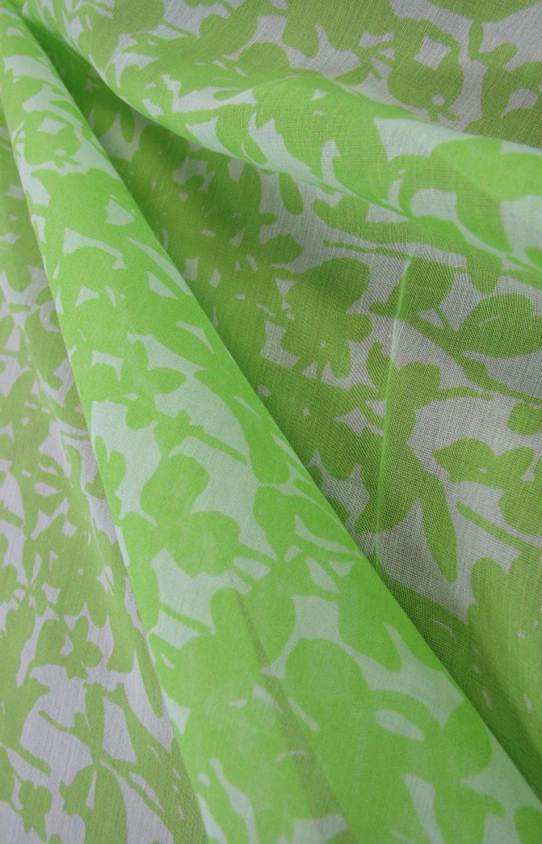 Włoska tkanina bawełniana typu batyst z zielono-śmietanowym, drobnym wzorkiem kwiatowym.