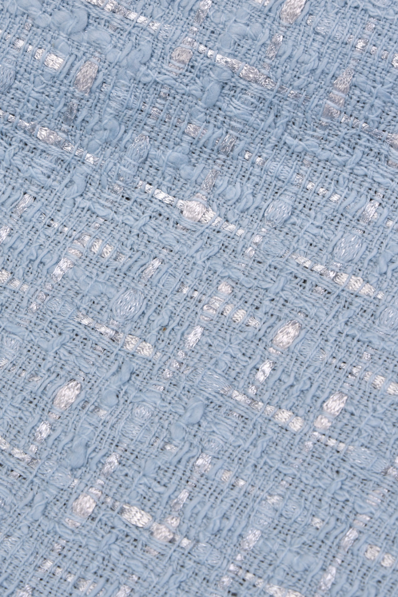 Włoska tkanina kostiumowa typu chanel w kolorze błękitnym. Tkanina typu chanel to tkanina bardzo elegancka, miękka i mięsista, znana z oryginalnego splotu.