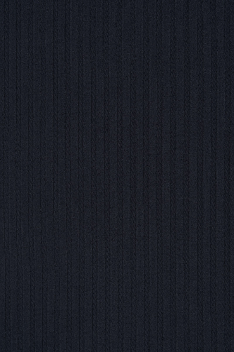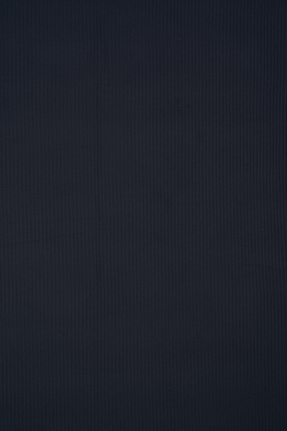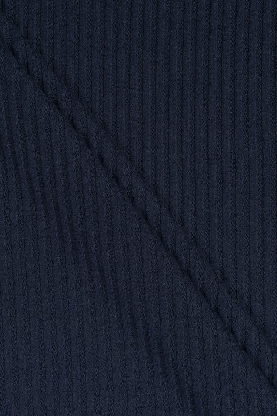 Włoska dzianina o szerokim splocie ściągaczowym (0,5 cm) w kolorze ciemnego granatu. Dzianina miękka, bardzo elastyczna, kryjąca, przyjemna w dotyku.
