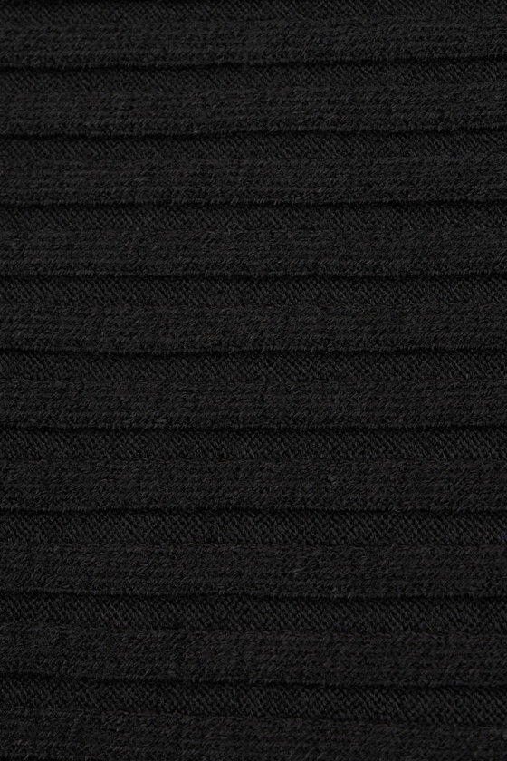 Włoska dzianina o szerokim splocie ściągaczowym (0,5 cm) w kolorze czarnym. Dzianina miękka, bardzo elastyczna, kryjąca, przyjemna w dotyku.