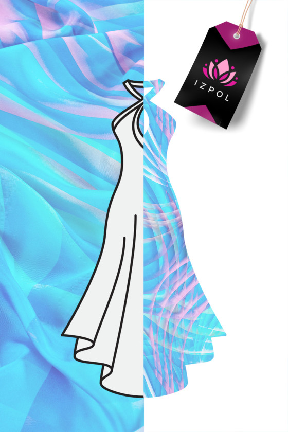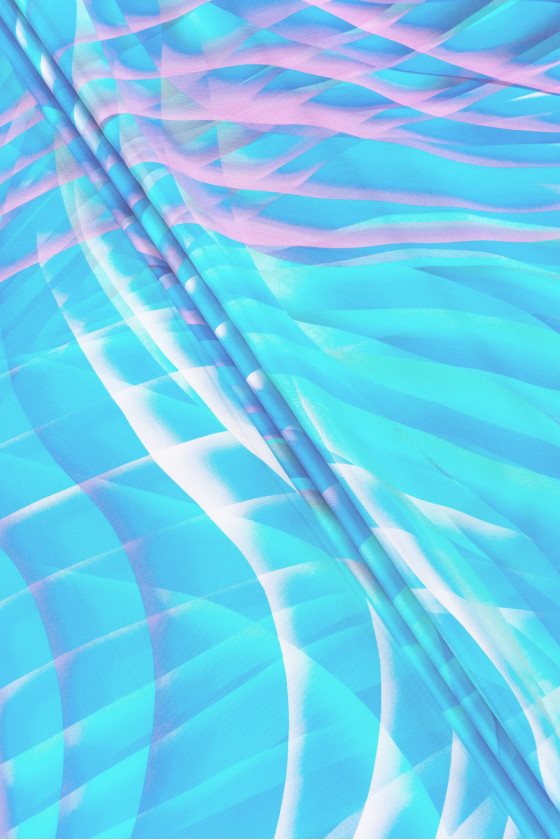 Włoska tkanina 100% jedwabna typu twill w kolorowe fale. Twill jedwabny to tkanina o splocie skośnym (diagonalnym), miękka, bardzo wytrzymała, delikatnie sztywno się układa. Idealna do uszycia koszuli, sukienki, spódnicy lub szala/apaszki.