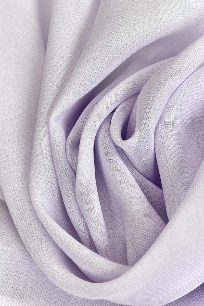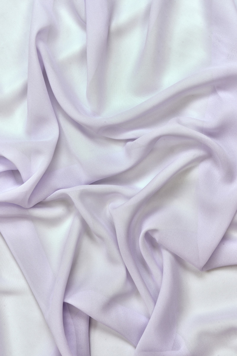 Włoska żorżeta 100% jedwabna w kolorze jasno liliowym. Tkanina jest cienka, transparentna, przewiewna, oddychająca, nieelastyczna. Idealna na bluzeczki, zwiewne sukienki.