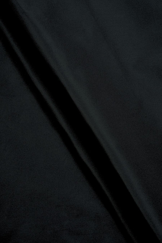 Włoska tkanina 100% jedwabna typu szantung w kolorze czarnym. Szantung to rodzaj jedwabnej tkaniny wykonanej z surowej przędzy, z charakterystycznymi nieregularnie rozłożonymi, grudkowatymi zgrubieniami (przędza ozdobnie nitkowana) w wątku. Posiada lekko sztywną, plastyczną strukturę.