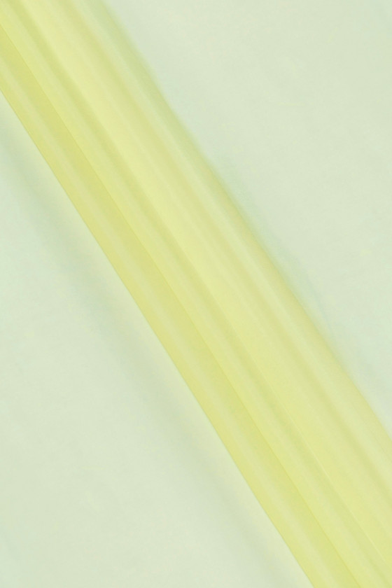 Włoska tkanina 100% jedwabna typu organza w kolorze pastelowym żółtym. Organza z naturalnego jedwabiu to tkanina cienka, transparentna ale sztywna z charakterystycznym dla tkanin jedwabnych delikatnym połyskiem.