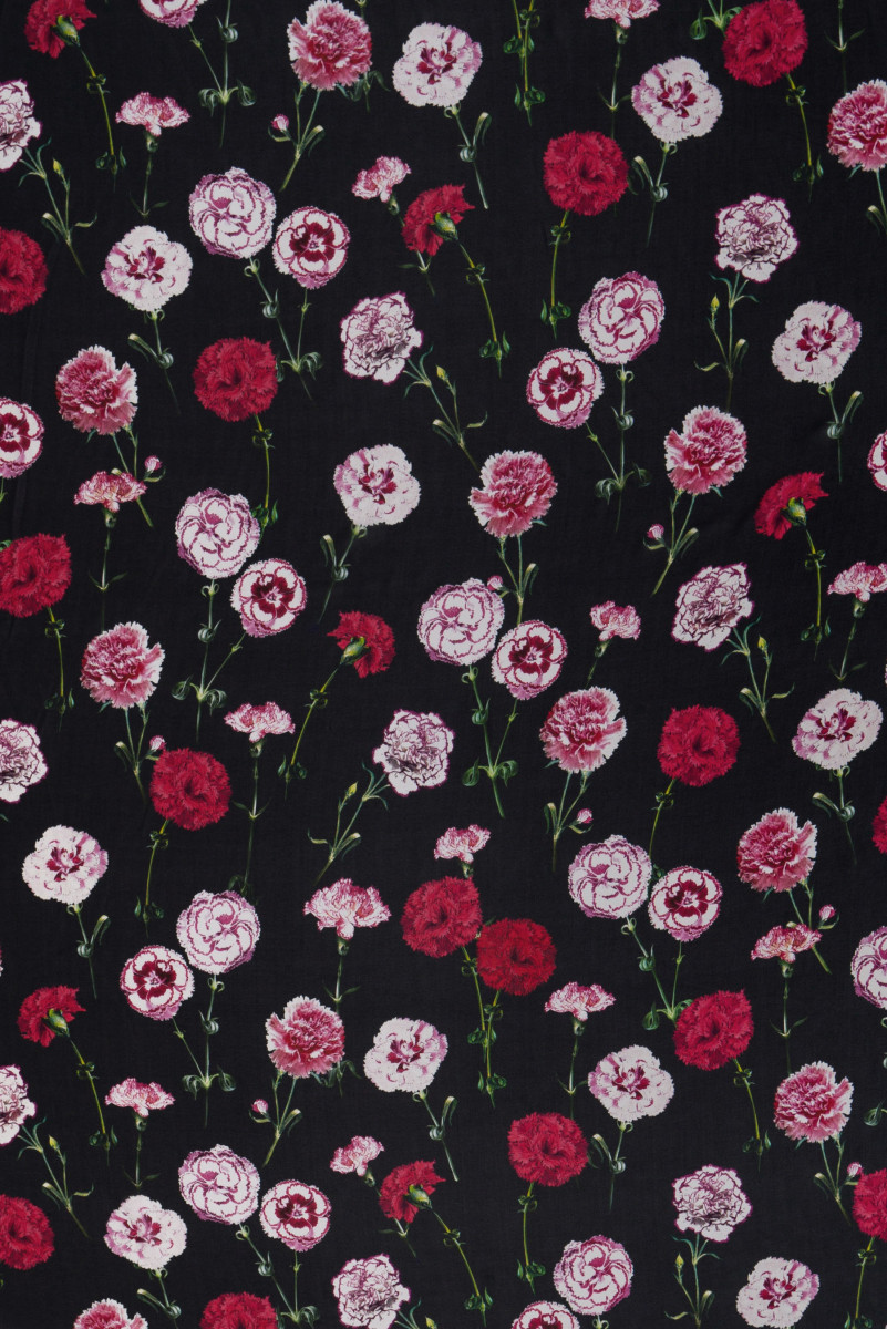 Szyfon z jedwabiu naturalnego jest tkaniną bardzo delikatną, zwiewną, transparentną. Idealna na zwiewne sukienki oraz bluzeczki. Tkanina nieelastyczna. N czarnym tle goździki.