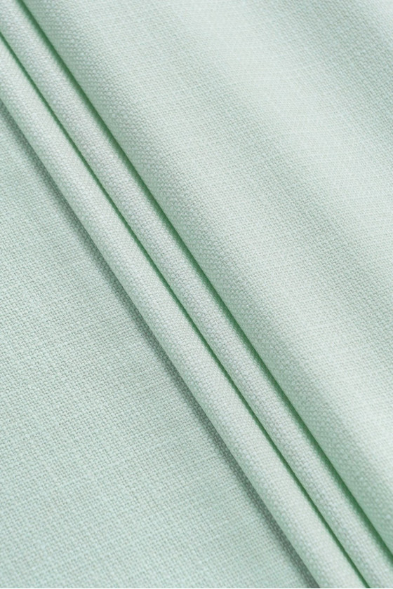 Włoska wełna o luźniejszym, lnianym splocie w kolorze pastelowej pistacji. W skład tkaniny wchodzi: wełna 90%, kaszmir 6%, jedwab 2%, elastan2%.