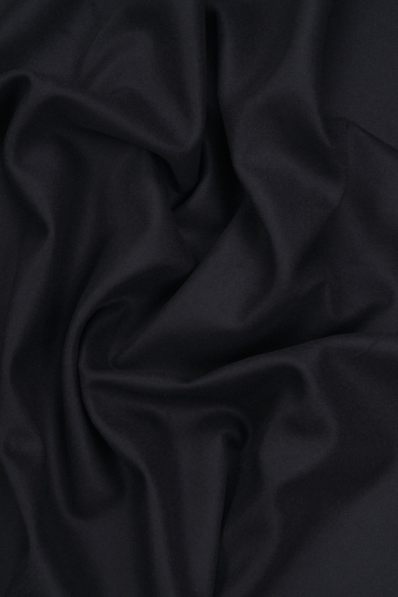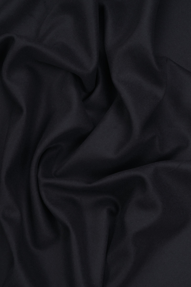 Włoska wełna płaszczowa w kolorze ciemnego granatu podszyta czarną pianką.