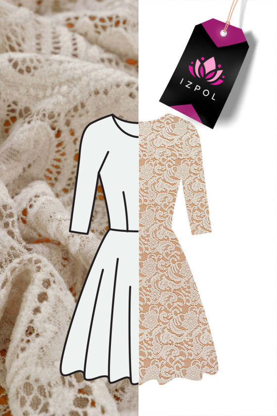 Koronka w kolorze zimnego beżu o wypukłym wzorze kwiatowym - sprawia wrażenie jakby była wykonana z wełny.