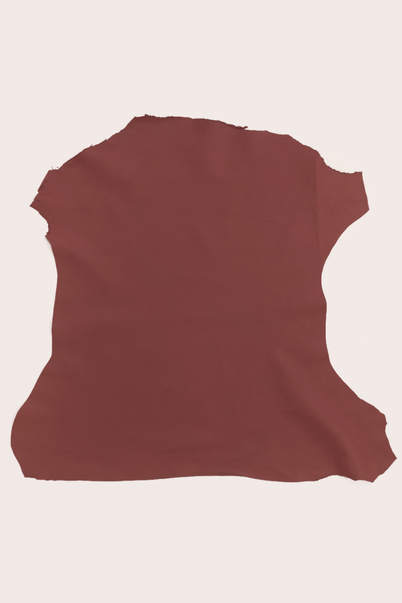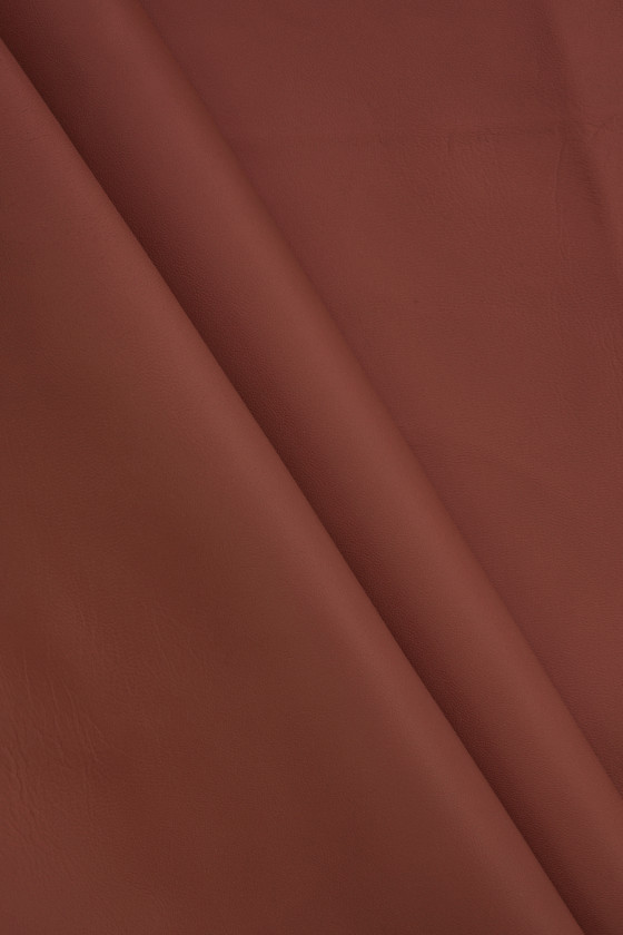 Włoska skóra naturalna licowana w kolorze ceglanego brązu. Skóra cielęca o gładkiej powierzchni i średniej grubości. Idealnie sprawdzi się do uszycia kurtki, płaszcza, spódnicy lub sukienki.