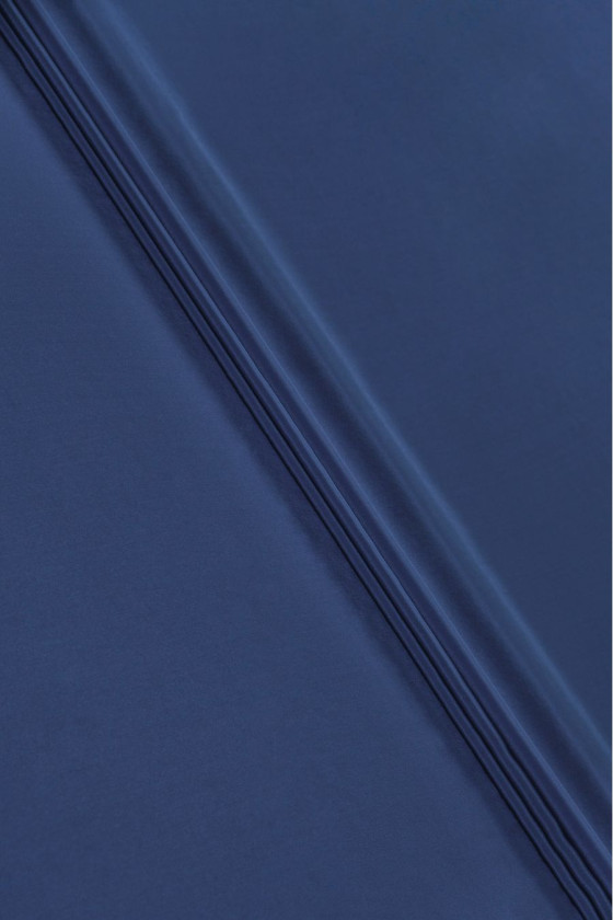 Włoska tkanina typu krepa utkana z acetatu z domieszką jedwabiu naturalnego w kolorze jasnego granatu. Krepa to tkanina o charakterystycznym, półmatowym wykończeniu. Ma delikatnie skręcony splot, który sprawia, że tkanina ma drobną strukturę.