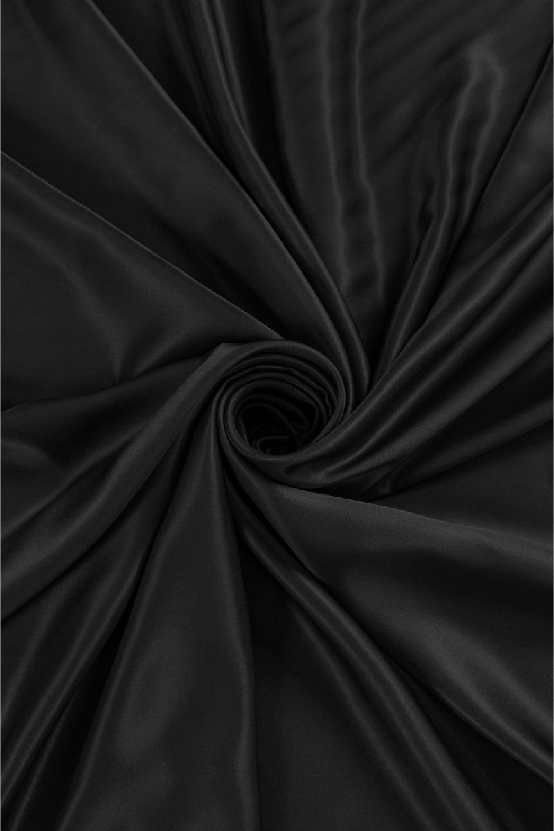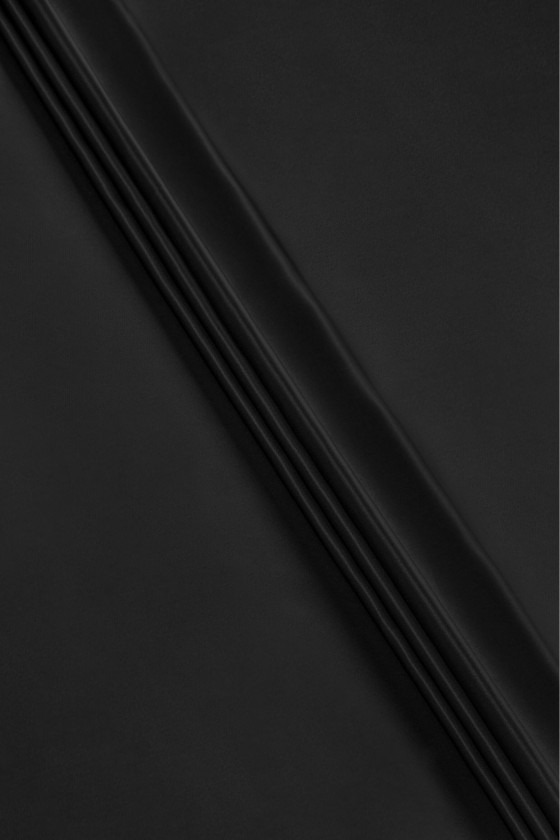 Włoska tkanina typu lyocell w kolorze czarnym. Tkanina jest nieelastyczna, śliska (chłodna) i półmatowa, delikatnie sztywno się układa. Idealnie sprawdzi się do uszycia szerokich spodni, sukienki lub spódnicy.