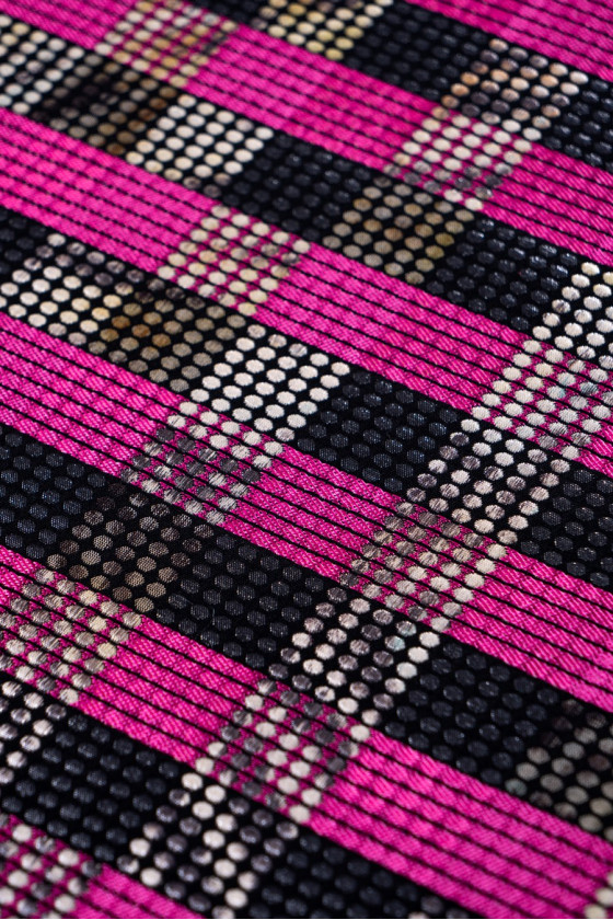 Tkanina kostiumowa typu żakard - dwustronna, bardzo ciekawy wzór kraty i kolorystyka. Idealny na żakiety, sukienki, spódnice.