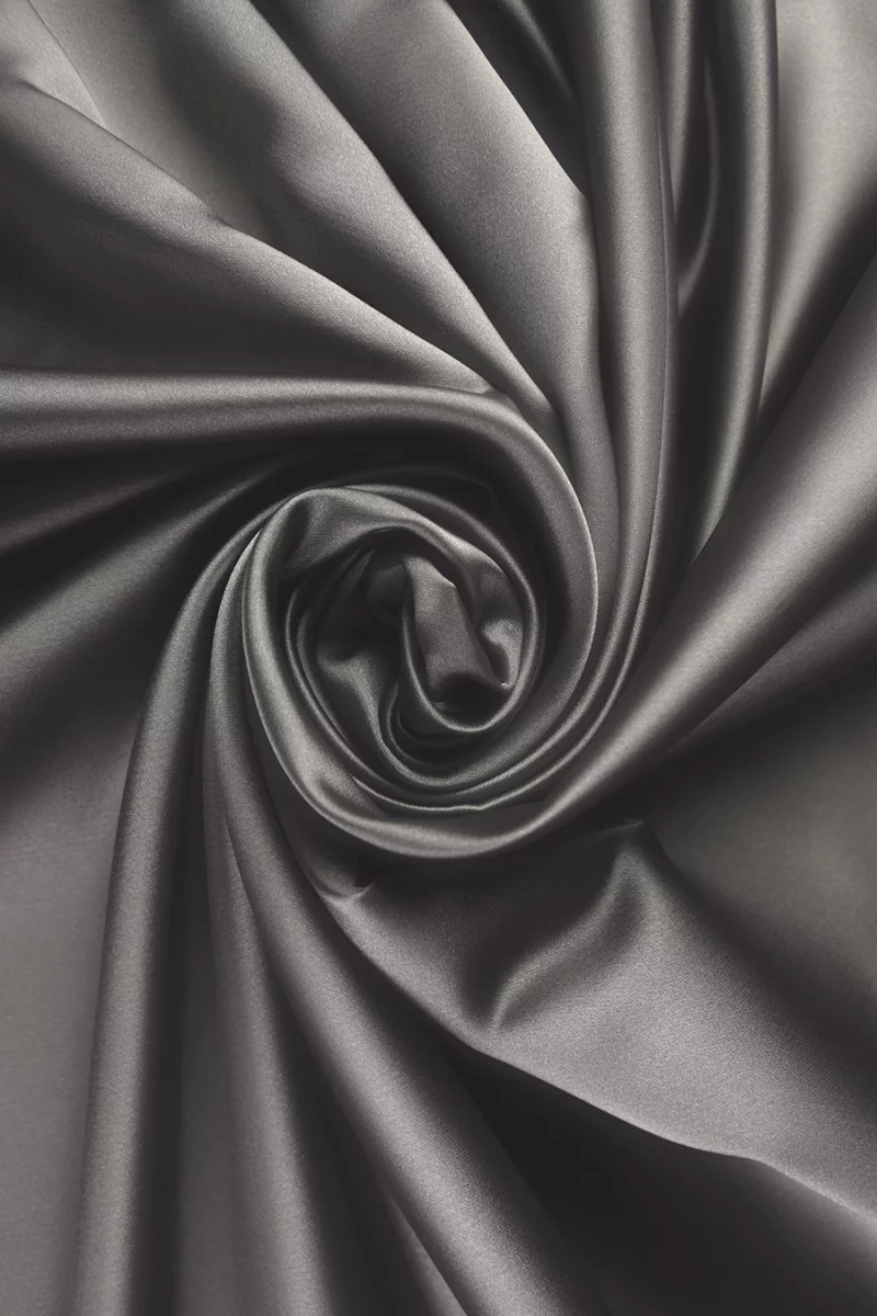 Tafta w kolorze ciemno-popielatym to tkanina gładka, z połyskiem i lekko sztywna. Idealna na eleganckie kreacje wizytowe- sukienki, spódnice i cienkie płaszczyki. Może stanowić także bazę pod koronki lub cieńsze jedwabie. Nadaje się także jako tkanina do dekoracji wnętrz- na zasłony, poduszki itp.
