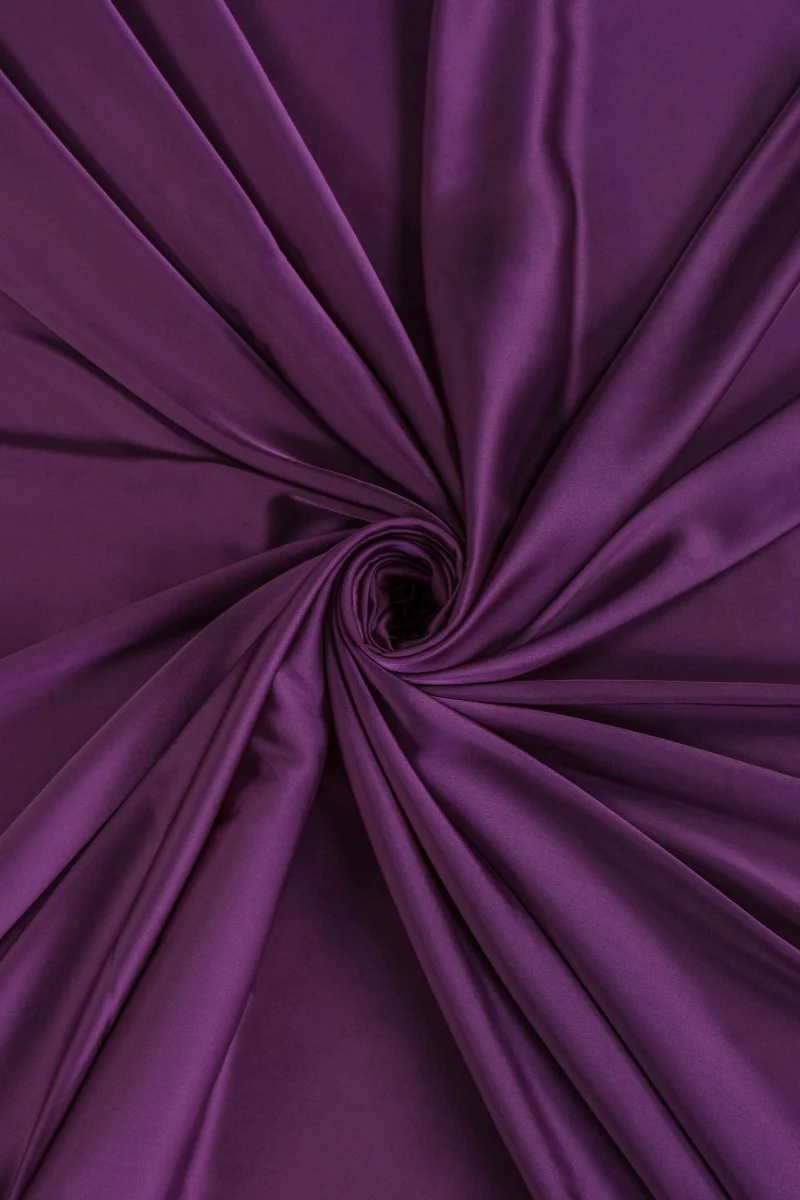 Satyna poliestrowa, elastyczna o szerokości 145 cm. Tkanina jest delikatna i aksamitna w dotyku, z lekkim połyskiem. Można z niej wyczarować zwiewne sukienki, delikatne bluzeczki, chusty, szaliki. Może stanowić także podkład pod delikatniejsze szyfony lub koronki.