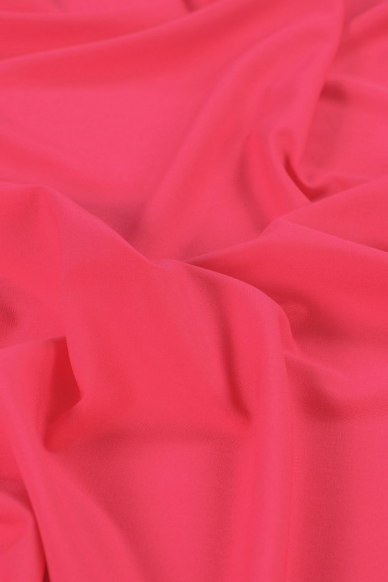 Włoska tkanina sukienkowa typu cadi w kolorze różowym. Tkanina sukienkowa typu cadi jest kryjąca, mięsista, spływająca (ciężka). Można uszyć z niej sukienki, bluzki, spódnice, cienkie marynareczki.