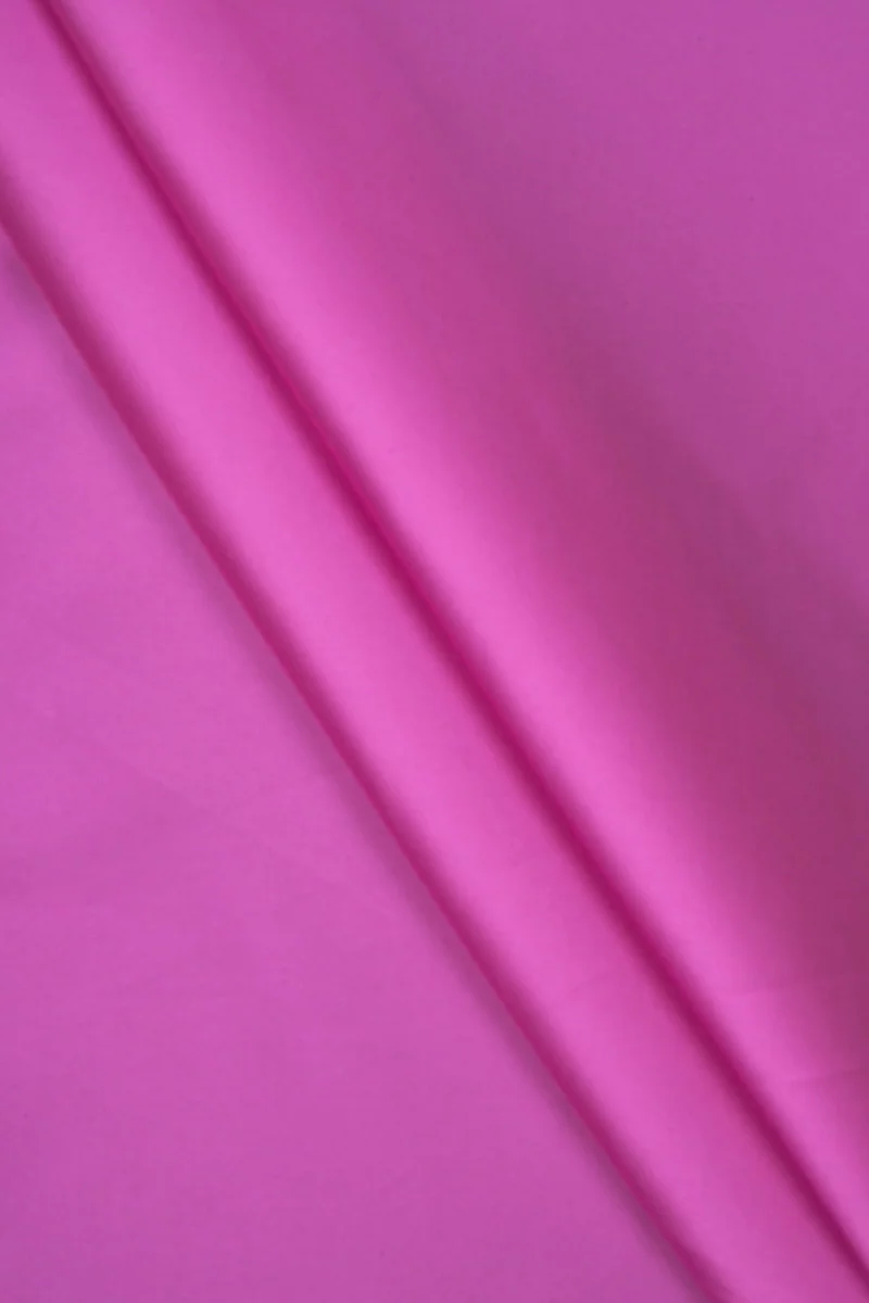 Włoska tkanina poliestrowo-jedwabna typu tafta utkana z dwóch kolorów nitek: fuksji i białej, które tworzą efekt dwutonu. Tafta to tkanina cienka ale sztywna z charakterystycznym delikatnym połyskiem, tkanina ma prosty, prążkowany splot, przypomina mikado. Idealna do uszycia sukienki, spódnicy lub do celów dekoracyjnych.