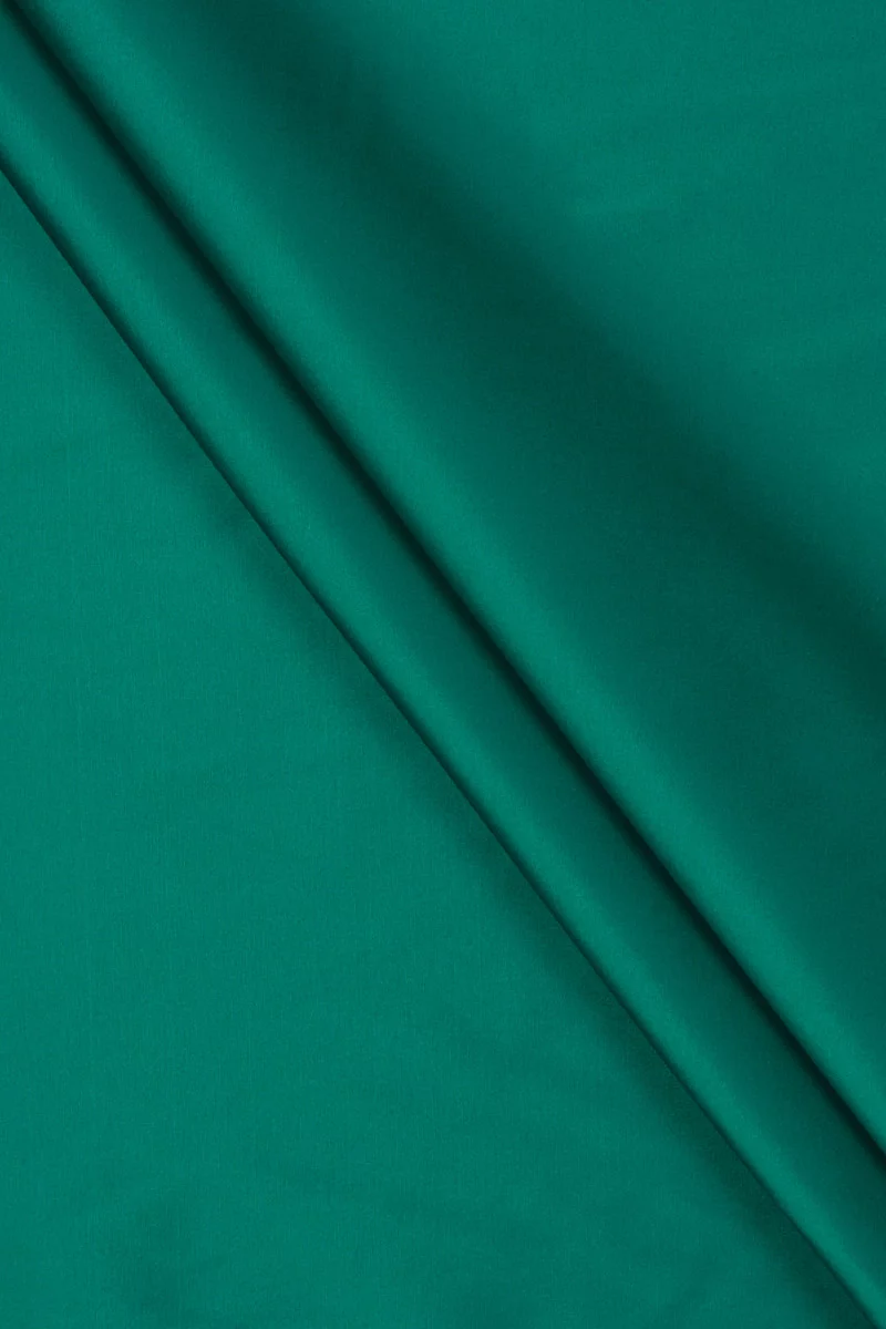 Włoska tkanina poliestrowa typu tafta utkana z dwóch kolorów nitek: ciemnozielonej i czarnej, które tworzą efekt dwutonu. Tafta to tkanina cienka ale sztywna z charakterystycznym delikatnym połyskiem, lekko elastyczna. Idealna do uszycia sukienki, spódnicy lub do celów dekoracyjnych.