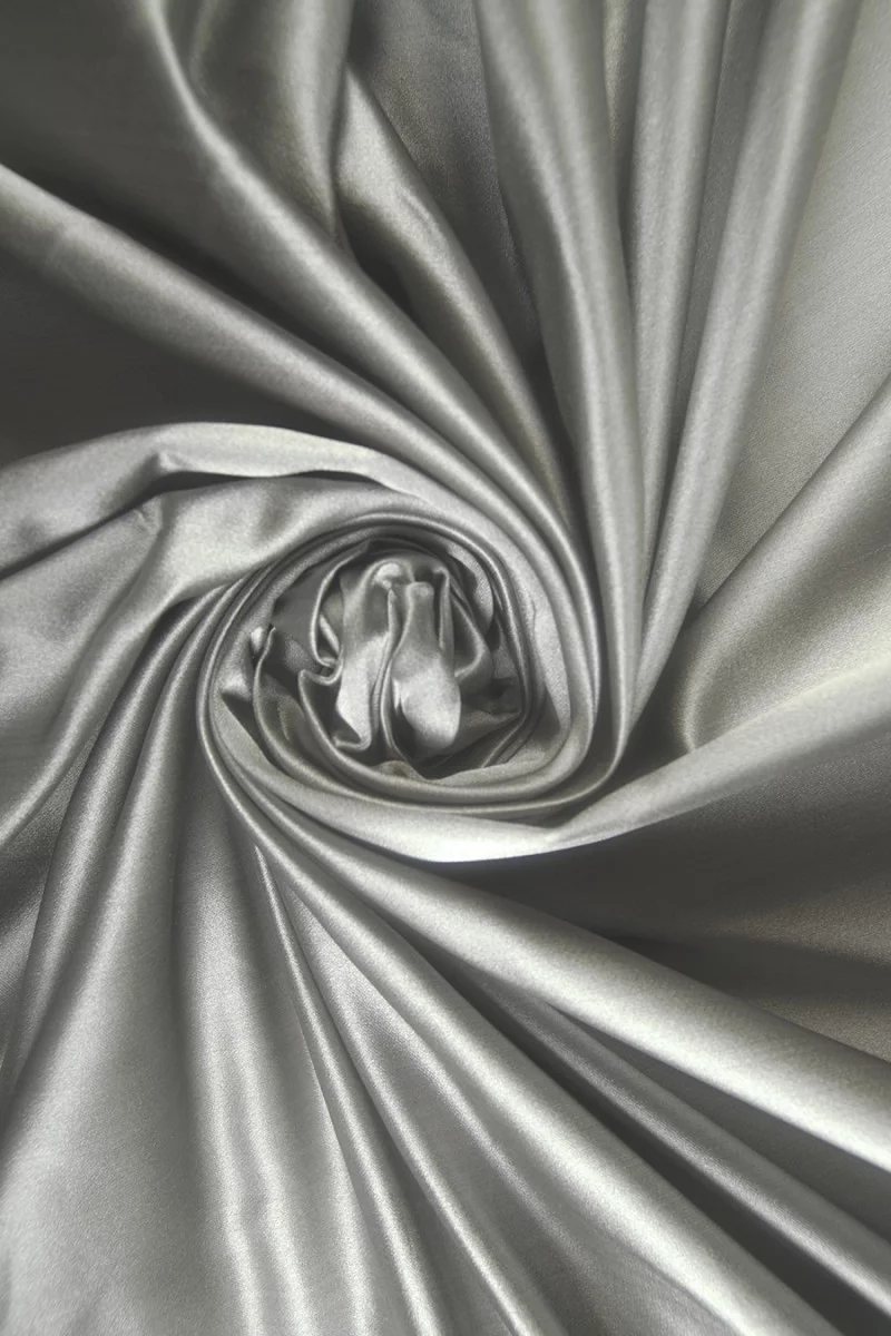 Tafta satynowana dwustronna w kolorze szarym z odcieniem zieleni tkana z dwóch nitek szarej i jasno oliwkowej jest to tkanina gładka, z połyskiem i lekko sztywna. Idealna na eleganckie kreacje wizytowe- sukienki, spódnice i cienkie płaszczyki. Może stanowić także bazę pod koronki. Nadaje się także jako tkanina do dekoracji wnętrz- na zasłony, poduszki itp.