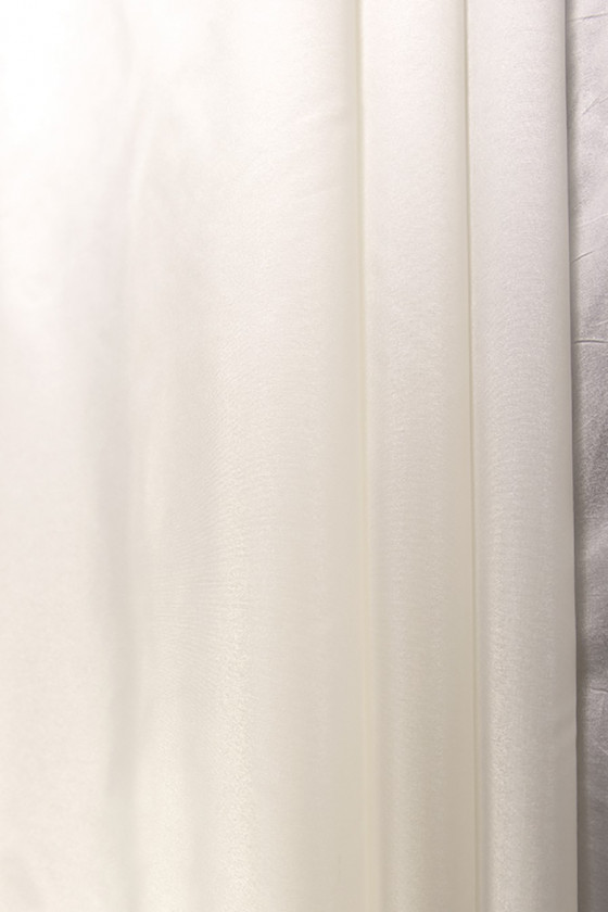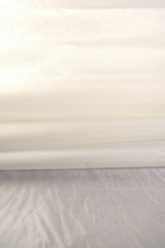 Tafta cienka w kolorze ecru to tkanina gładka, z połyskiem i lekko sztywna. Idealna na eleganckie kreacje wizytowe- sukienki, spódnice. Nadaje się także jako tkanina do dekoracji wnętrz- na zasłony, poduszki itp.