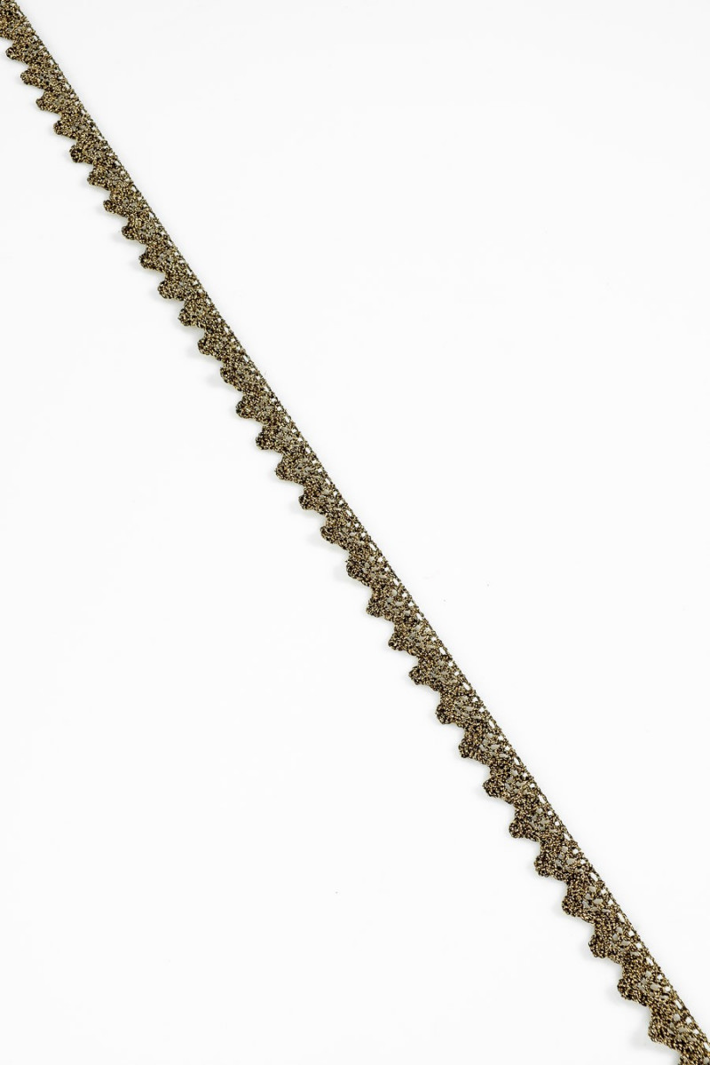 Włoska taśma pasmanteryjna w kolorze czarnym ze złotą nitką lureksową. Ciekawy efekty "pracy na szydełku".