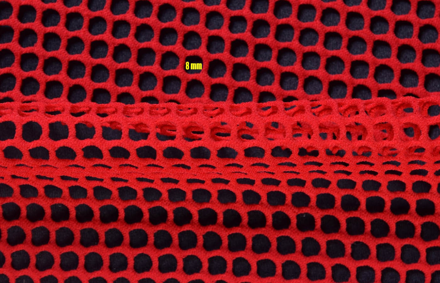Siatka poliamidowa miękka czerwona z dużymi oczkami o wielkości ok. 8 mm. Tkanina z przeznaczeniem na ubrania oraz dekoracje .