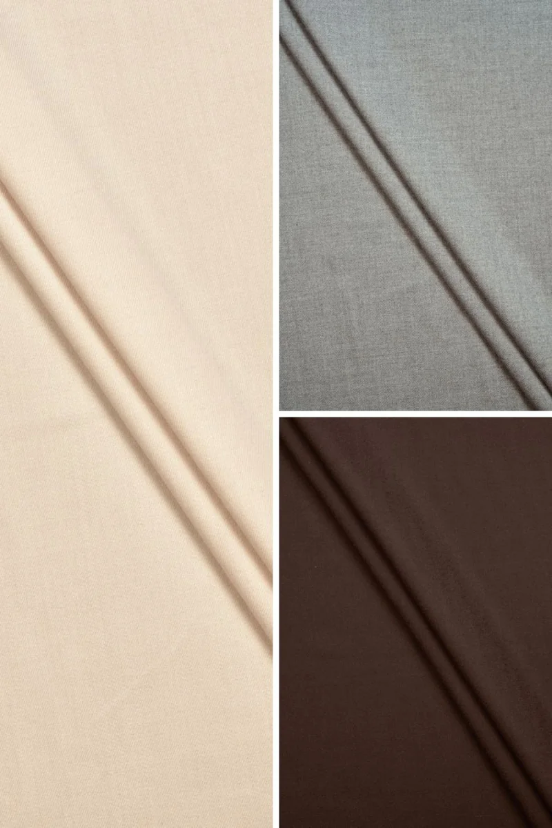 Włoska tkanina utkana z mieszanki poliestru i wiskozy z dodatkiem elastanu w dwóch kolorach. Tkanina jest dość mięsista, kryjąca, miękka, wykonana w delikatnym splocie diagonalnym. Doskonała propozycja na marynarki, spodnie, sukienki, spódnice.