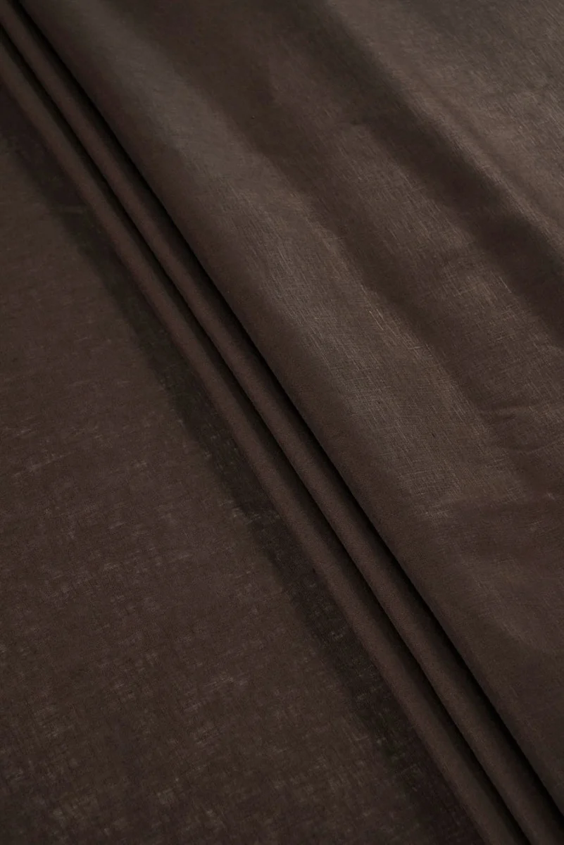 Włoska tkanina wykonana w 100% z naturalnego lnu w eleganckim, kolorze ciemnego brązu. Materiał wyróżnia się gładkim, równomiernym splotem bez charakterystycznych dla lnu zgrubień, dzięki czemu jego powierzchnia jest wyjątkowo estetyczna i subtelna. Głęboki odcień brązu nadaje tkaninie szlachetnego charakteru i sprawia, że doskonale wpisuje się zarówno w minimalistyczne, jak i bardziej eleganckie projekty. Tkanina pięknie się układa, pozwala skórze oddychać i gwarantuje naturalną wygodę użytkowania. Doskonale sprawdzi się do szycia sukienek, koszul, spodni, spódnic, tunik oraz lekkich marynarek, nadając projektom naturalny, a jednocześnie elegancki charakter.
