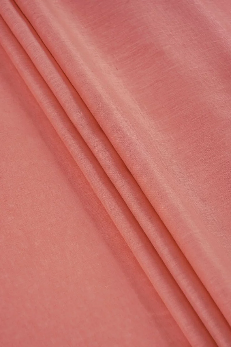 Włoska tkanina 100% lniana w kolorze jasnym koralowym.