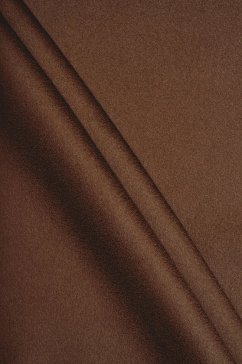 Włoska tkanina płaszczowa utkana w 100% z wełny naturalnej w kolorze brązowym. Tkanina miękko się układa, jest nieelastyczna i mięsista. Tkaniny wełniane idealnie nadają się na okrycia wierzchnie (płaszcz, kurtka, kamizelka) gdyż ogrzewają a jednocześnie pozwalają skórze oddychać.
