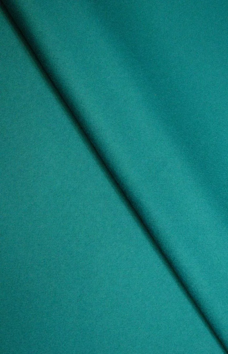 Włoska tkanina płaszczowa utkana z wełny typu virgin z domieszką kaszmiru oraz poliamidu w kolorze morskim. Materiał z gatunku jesienno-zimowego z przeznaczeniem na płaszcze, kurtki, kamizelki. Zalecane czyszczenie chemiczne.