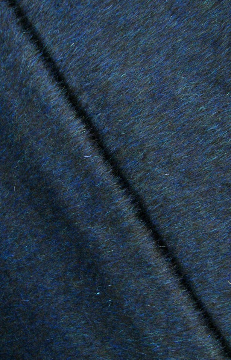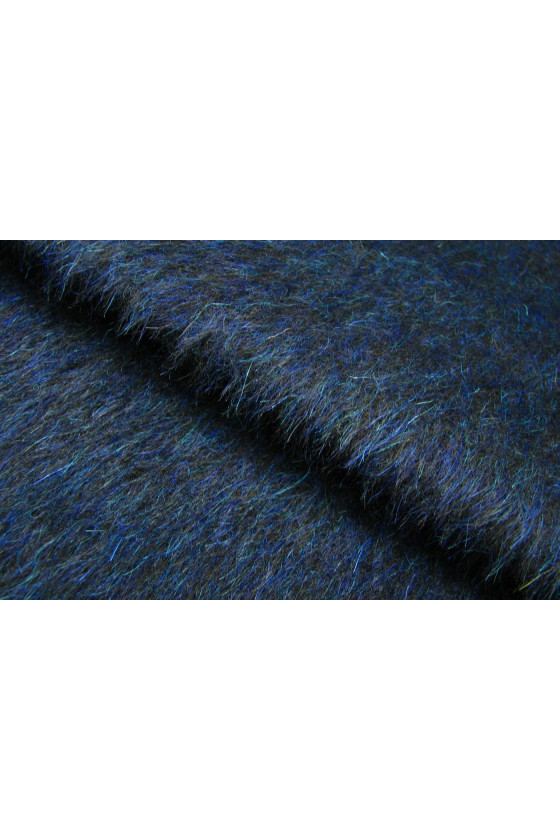 Włoska tkanina płaszczowa w kolorze czarnym z niebieskim włosem, utkana w 70% z angory i w 30% z moheru. Włókna moheru są długie o charakterystycznym połysku, który nadaje tkaninom eleganckiego charakteru. Tkaniny z angory są miękkie, puszyste i delikatne. Idealna na uszycie płaszcza, kurtki, kamizelki.