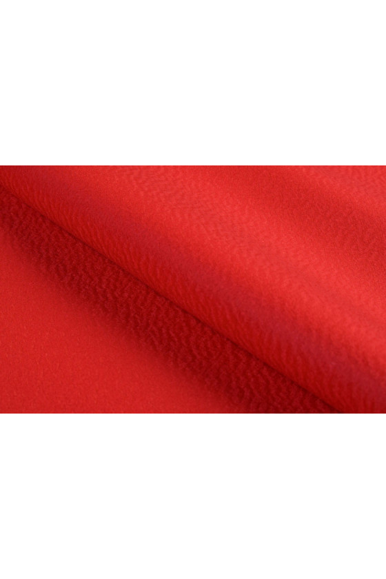 Włoska tkanina płaszczowa utkana z wełny naturalnej z dodatkiem kaszmiru w kolorze jasnej czerwieni. Tkaniny wełniane idealnie nadają się na okrycia wierzchnie (płaszcz, kurtka, kamizelka) gdyż ogrzewają a jednocześnie pozwalają skórze oddychać. Dodatek kaszmiru sprawia że ma jeszcze lepsze właściwości izolujące, gdyż kaszmir jest cieplejszy niż wełna owcza.