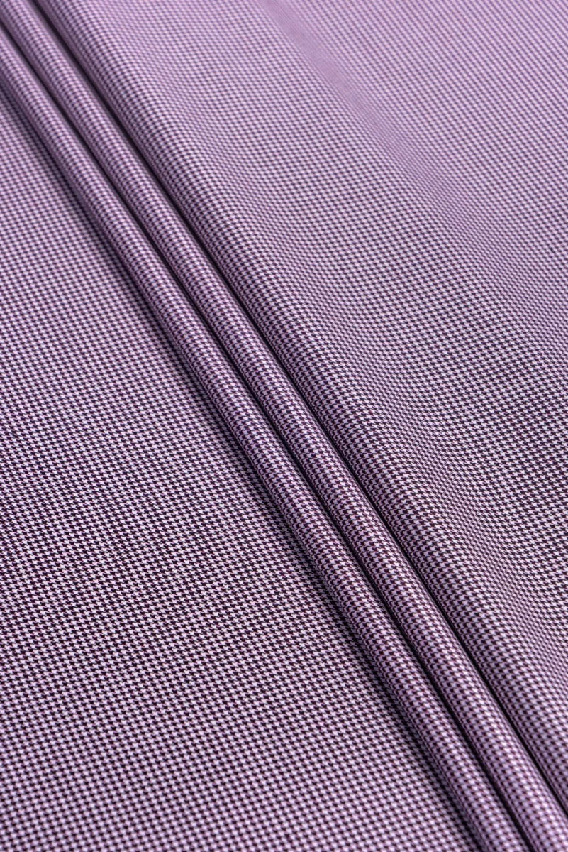 Włoska tkanina kostiumowa - motyw drobnej, kurzej stopki. Kolorystyka: biały, czarny, fioletowy