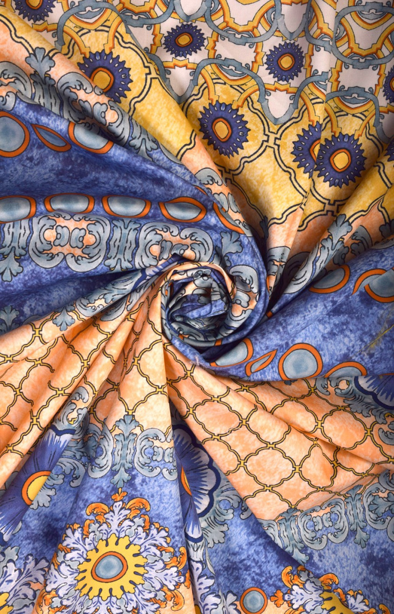 Kolorowa bawełna wzorzysta, Idealna na letnie sukienki, tuniki, bluzeczki. Tkanina występuje w kuponie 100 cm* 140 cm.