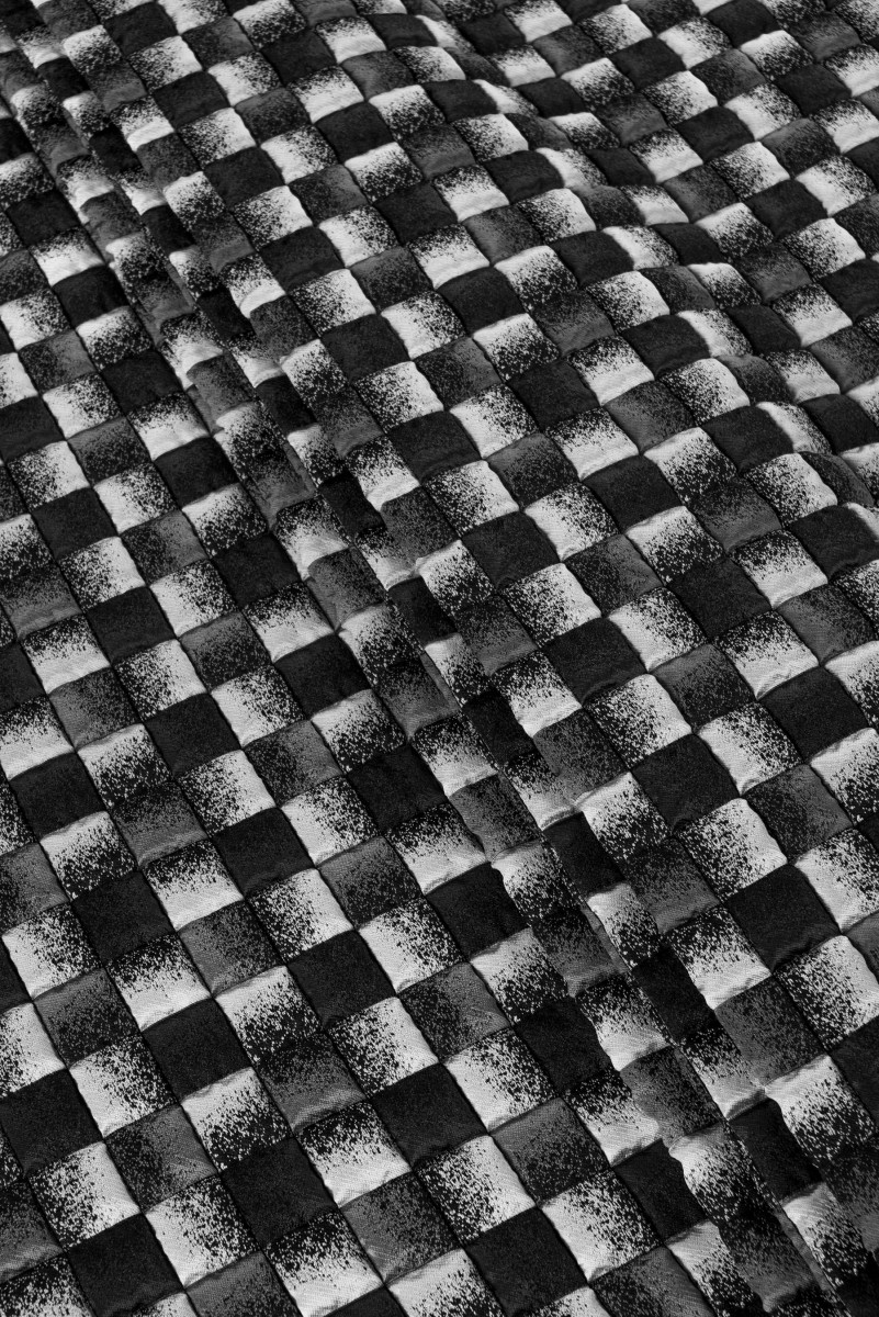 Tkanina kurtkowa pikowana w srebrno-czarną kratkę o efekcie 3D