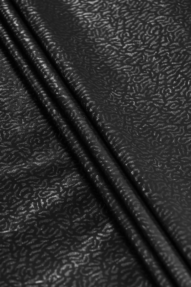 Włoska, oryginalna tkanina wiskozowa w kolorze czarno-srebrnym z nadrukiem zwierzęcym. Tkanina lekko sztywna, ścisła, delikatnie pracuje. Polecamy do uszycia kurtek, marynarek lub jako tkaninę dekoracyjną
