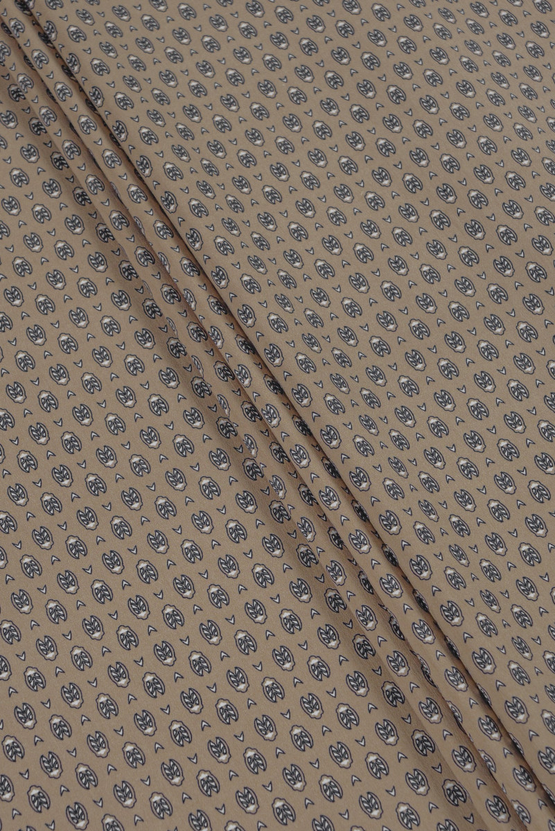 Włoska tkanina w kolorze szaro-beżowym z drobnymi wzorkami - tkanina matowa, lekko sztywna, bardzo elastyczna. Idealna do uszycia wąskich spodni, spódnicy, marynarki, dopasowanej sukienki.