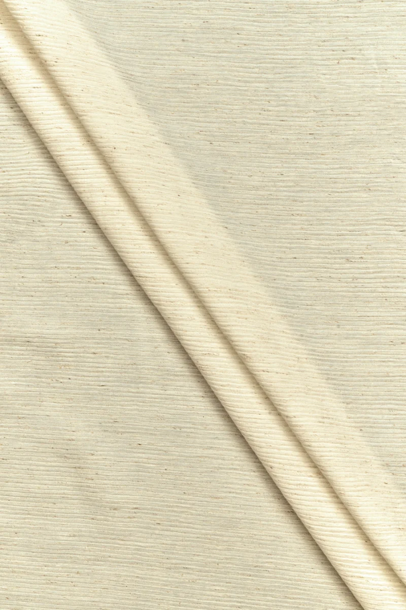 Oryginalna tkanina z wiskozy z dodatkiem lnu i poliamidu w kolorze melanżowego ecru i beżu . Tkanina z fakturą karbowania ( nieregularnego, cienkiego plisu ).