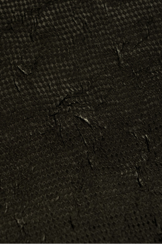 Włoska tkanina kostiumowa typu żakard w kolorze zgniłej zieleni. Tkanina cienka, sztywna, elastyczna o ciekawej, gniecionej strukturze. Idealna do uszycia sukni, bluzki, spódnicy lub do celów dekoracyjnych.
