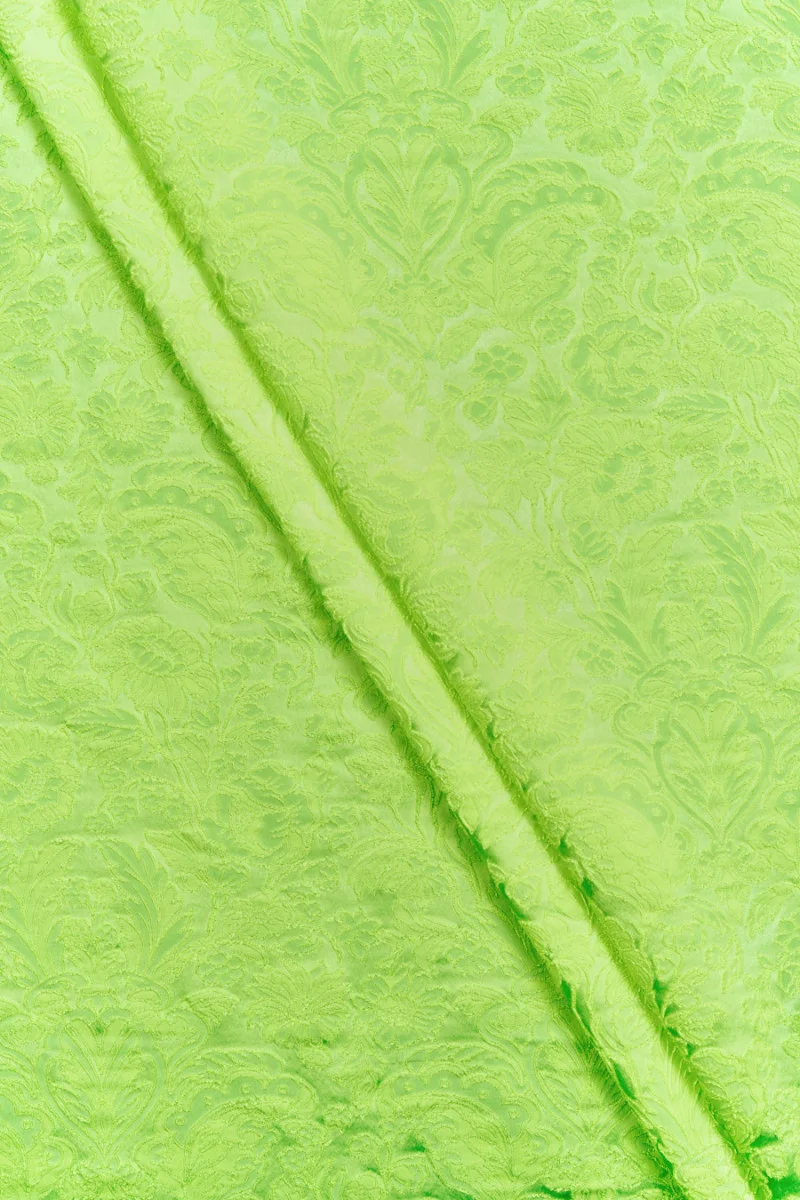 Włoska tkanina typu żakard w kolorze neonowej limonki utkana we wzór paisley. Tkanina utkana jest w wypukły wzór z wykończeniem satynowo matowym, co dodaje mu elegancji. Dzięki elastyczności można ja wykorzystać do uszycia bardziej dopasowanych ubrań takich jak : sukienki, spódnice, spodnie lub żakiety.